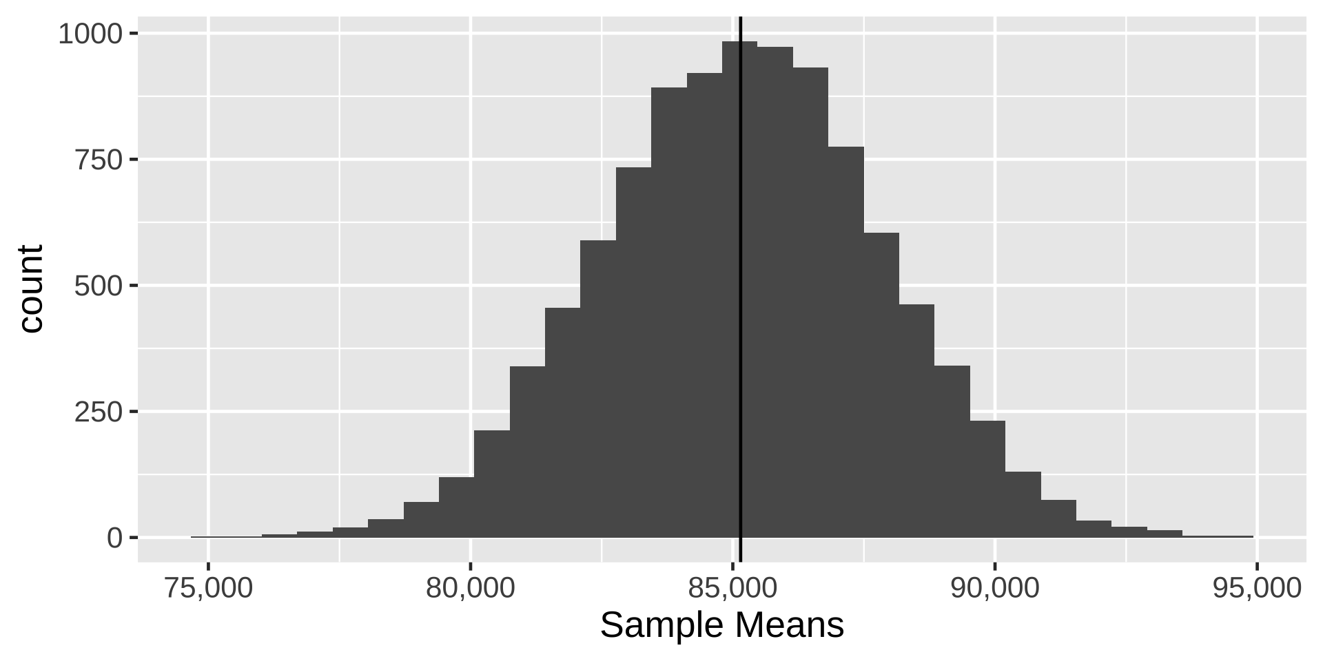 Let’s assume we went ahead and took a (random) sample of LAPD staff and asked their salary information (and they report to us truthfully) and calculated a mean, would we find a mean of 85149.05? Why, why not?
