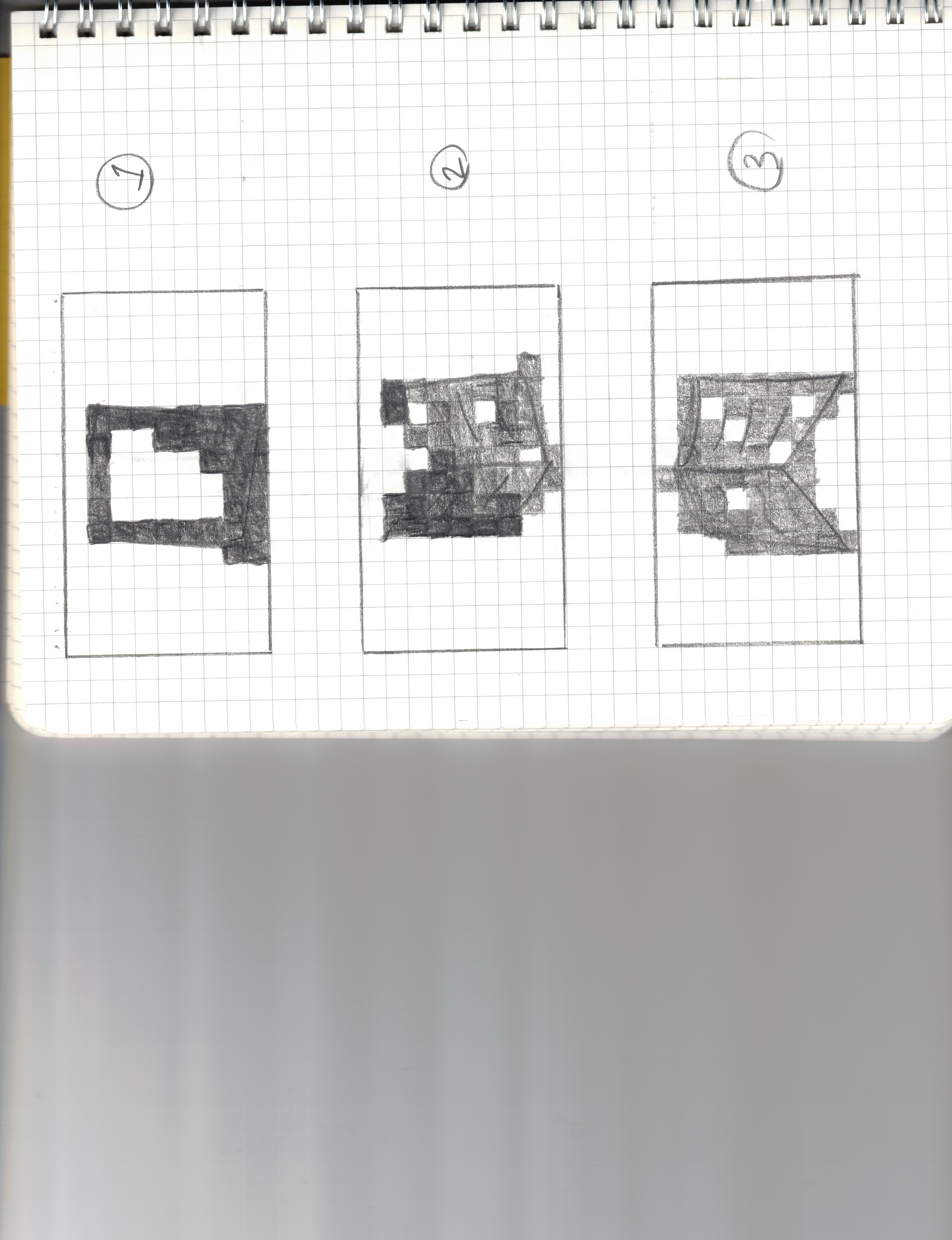For any square that has a line, a dot or any pen/pencil mark, shade the whole square.